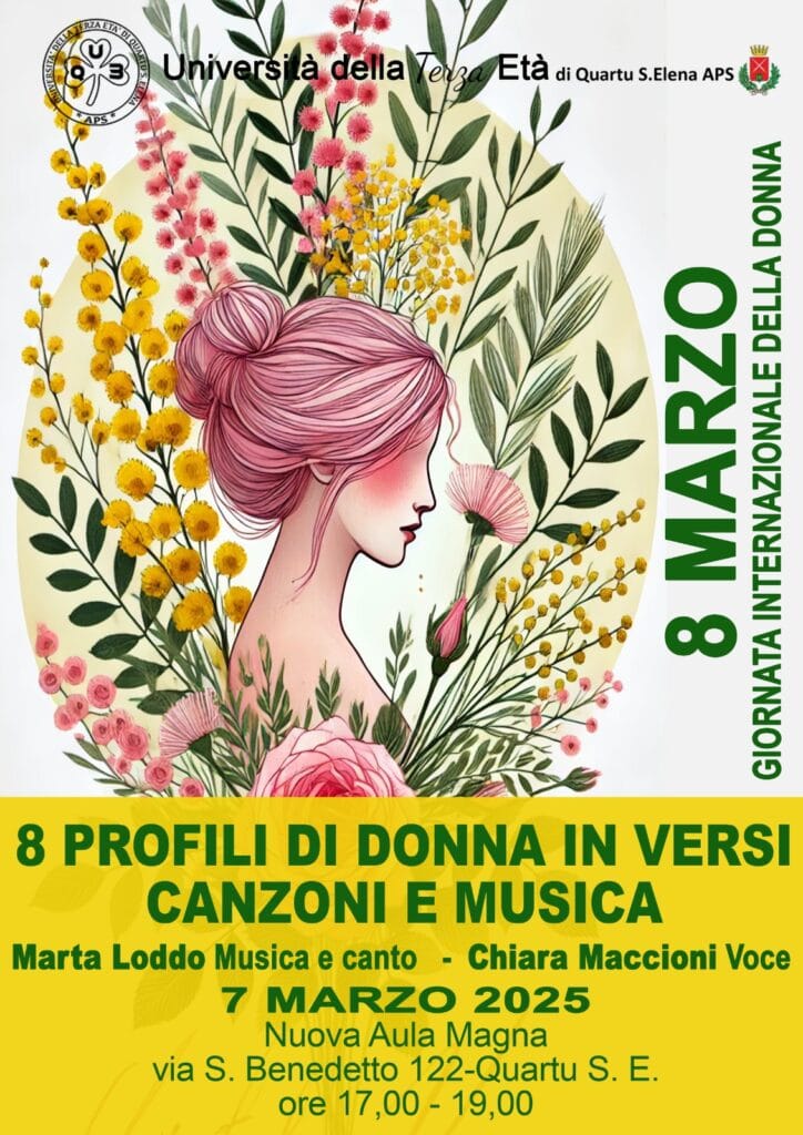 Un convegno dedicato alla Festa della Donna che intreccia arte, emozione e riflessione. Otto ritratti femminili prendono vita attraverso poesie, testi e melodie, dando voce a storie di forza, fragilità, passione e cambiamento. Un’occasione per celebrare l’identità e il ruolo della donna nella società, attraverso il linguaggio universale della parola e della musica.